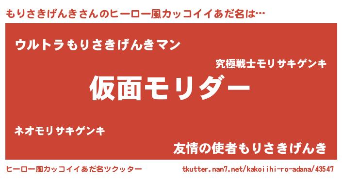 | 男性向けラノベタイトル風あだ名 | 『この素晴らしい世界にもりさきげんきを!』 |