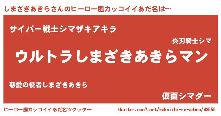 | 男性向けラノベタイトル風あだ名 | 『シマザキアキラスレイヤー』 |