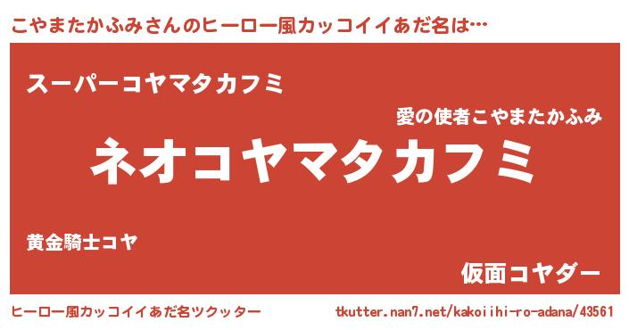 | ヘコむあだ名 | 『こやまたかふみ(遠い目)』『こやふぇ~』 |