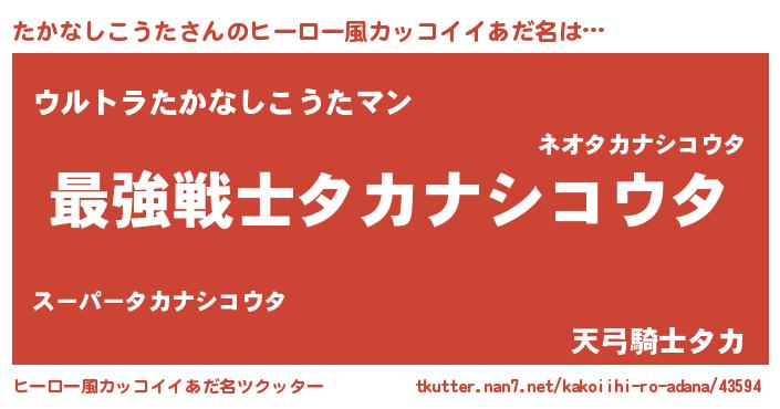 | 男性向けラノベタイトル風あだ名 | 『Re:たかなしこうたから始める異世界生活』 |