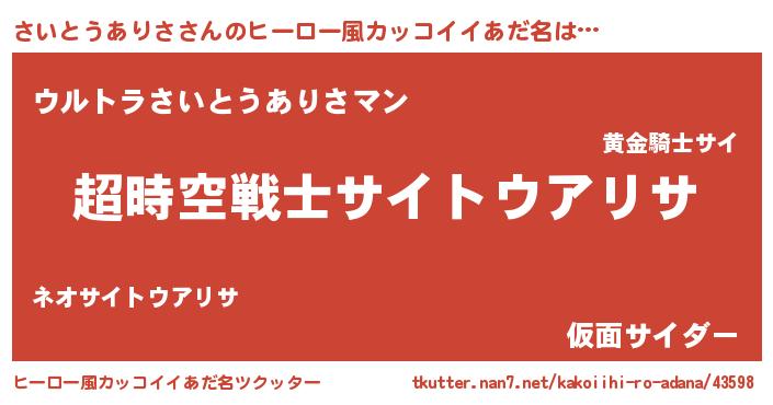 | 女子向けラノベタイトル風あだ名 | 『さいとうありさなんてお断りですっ。』 |