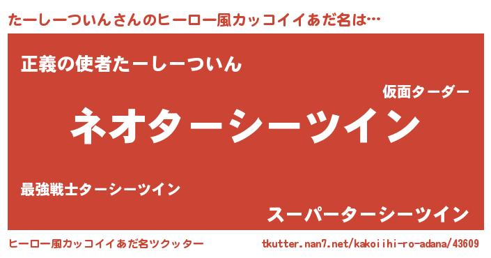 | 伝説のあだ名 | 『古より伝わる勇者たーしーついん』 |
