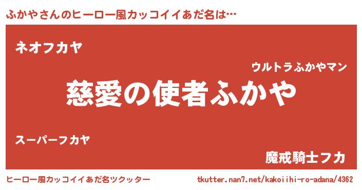 | 女子向けラノベタイトル風あだ名 | 『死神ふかやの再婚』『ふかやの契約王妃』 |