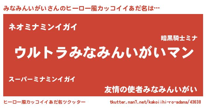 | 男性向けラノベタイトル風あだ名 | 『転生したらみなみんいがいだった件』 |