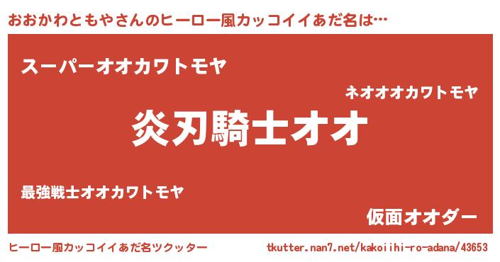 | 男性向けラノベタイトル風あだ名 | 『おおかわともやの嫁は女の子じゃないと思った?』 |