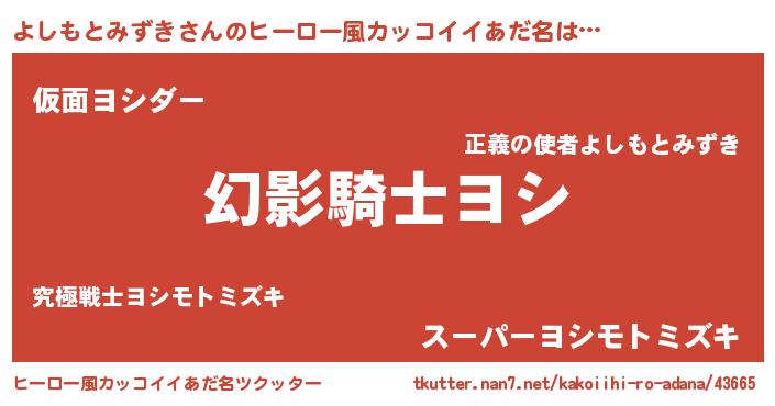 | ポケモン風あだ名 | 『ヒヨシモトミズキ』『ヨーシイ』 |