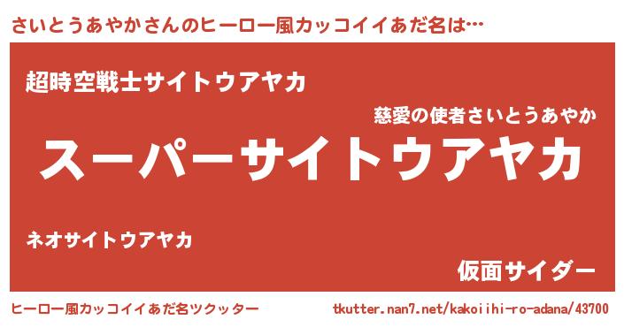 | 男性向けラノベタイトル風あだ名 | 『サイトウアヤカアートオンライン』 |
