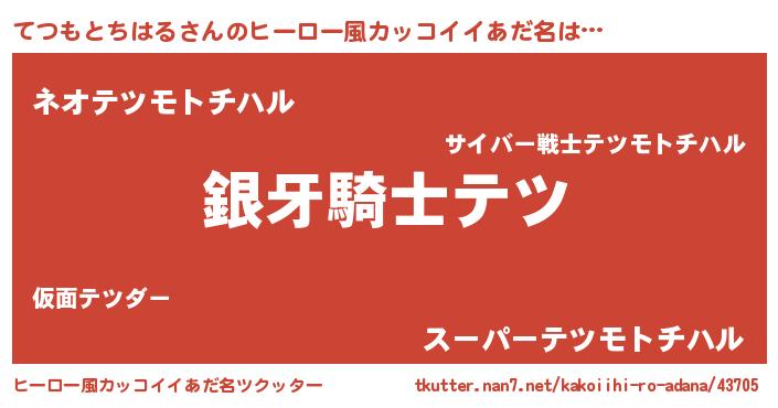 | 意味不明あだ名 | 『とにかく怪しいてつもとちはる』 |