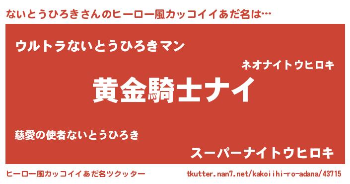 | ポケモン風あだ名 | 『ヒナイトウヒロキ』『ナイゴンZ』 |