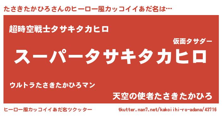| 男性向けラノベタイトル風あだ名 | 『うちのたさきたかひろが世界を掌握している!』 |