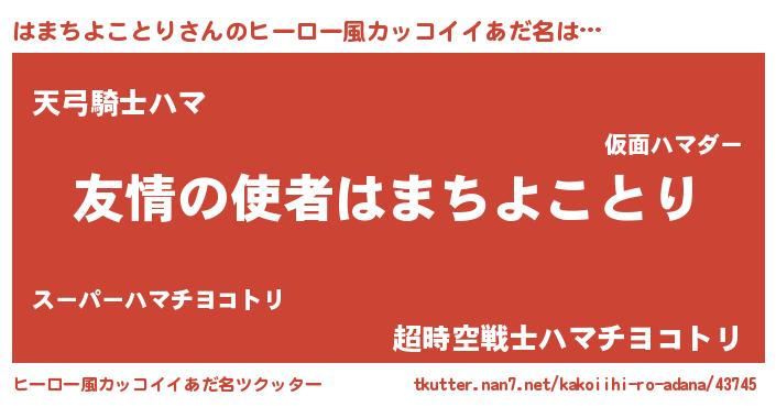 | 男性向けラノベタイトル風あだ名 | 『緋弾のハマチヨコトリ』 |