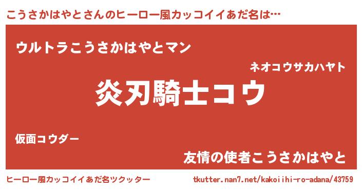 | 意味不明あだ名 | 『とにかく怪しいこうさかはやと』 |