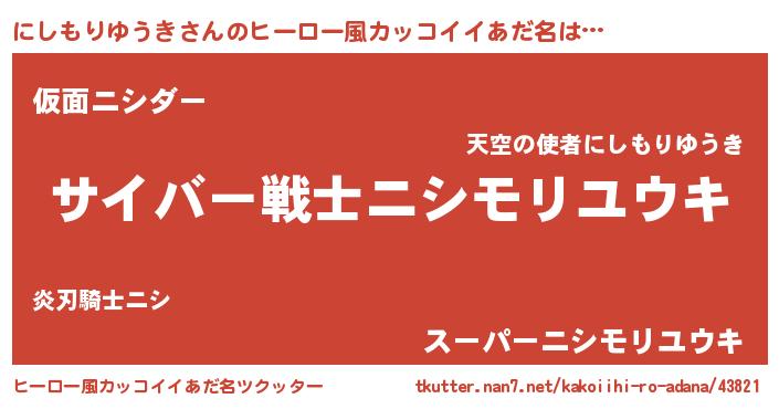| 意味不明あだ名 | 『自称にしもりゆうき』 |
