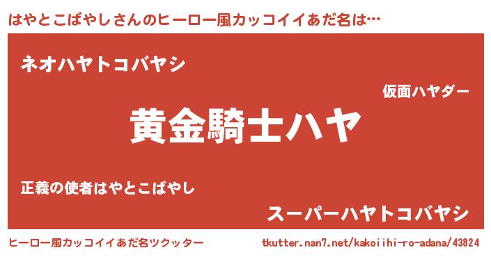 | 胡散臭い通販商品みたいなあだ名 | 『信頼と実績のサプリメント…その名も「はやとこばやし」』 |