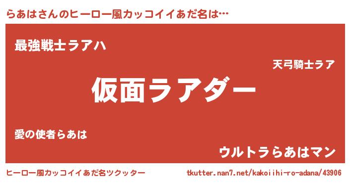 | 男性向けラノベタイトル風あだ名 | 『この素晴らしい世界にらあはを!』 |
