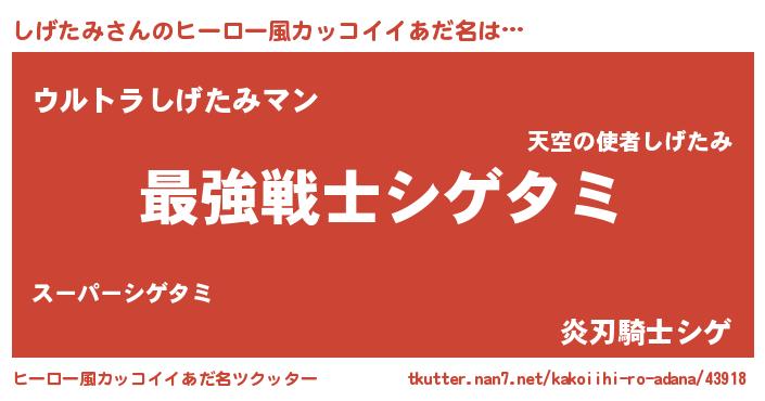 | ヘコむあだ名 | 『酢こんぶ』『しげっぺ』『しげにー』 |