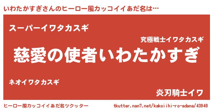 | 男性向けラノベタイトル風あだ名 | 『ノーゲーム・ノーイワタカスギ』 |