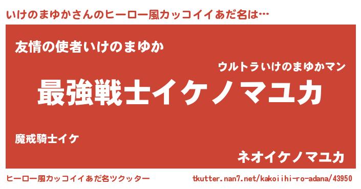 | 男性向けラノベタイトル風あだ名 | 『Re:いけのまゆかから始める異世界生活』 |
