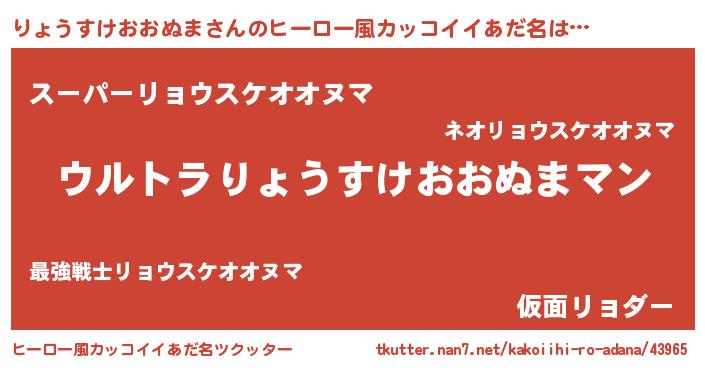 | 男性向けラノベタイトル風あだ名 | 『やはりりょうすけおおぬまの青春ラブコメはまちがっている 』 |