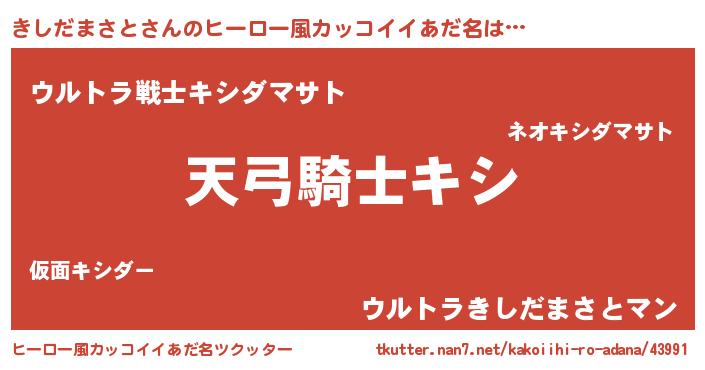 | 男性向けラノベタイトル風あだ名 | 『きしだまさと~年齢イコール彼女いない歴の魔法使い~』 |