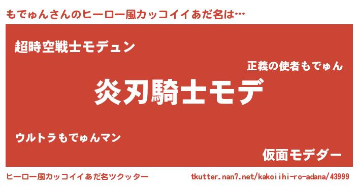 | 男性向けラノベタイトル風あだ名 | 『もでゅんの嫁は女の子じゃないと思った?』 |