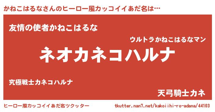 | 意味不明あだ名 | 『永久保存かねこはるな』 |