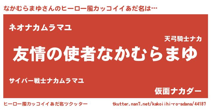 | ヘコむあだ名 | 『なかむらまゆ(爆)』『なかぷりん』 |