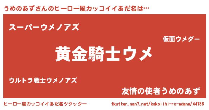 | 女子向けラノベタイトル風あだ名 | 『うめのあずは平凡を望む』 |