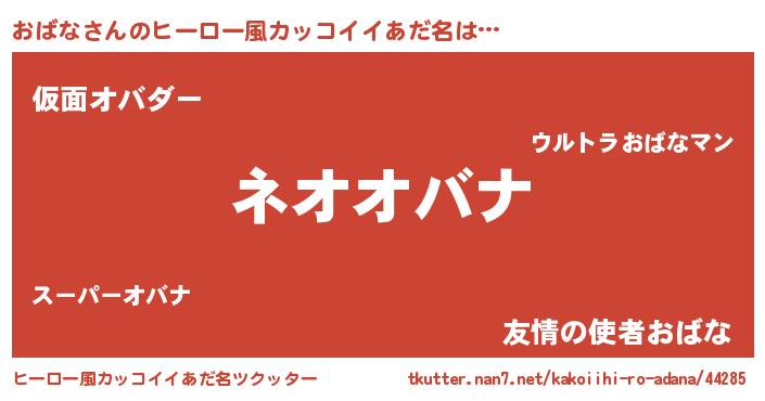 | 男性向けラノベタイトル風あだ名 | 『オバナスレイヤー』『魔弾の王とおばな』 |