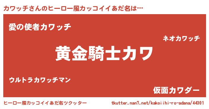 | 胡散臭い通販商品みたいなあだ名 | 『信頼と実績のサプリメント…その名も「カワッチ」』 |