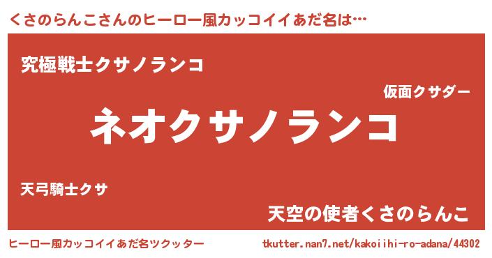 | ヘコむあだ名 | 『くさのらんこ(小並感)』『くさぷりん』 |