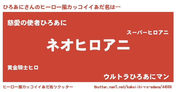 | 男性向けラノベタイトル風あだ名 | 『ひろあにという概念が存在しない退屈な世界 』 |
