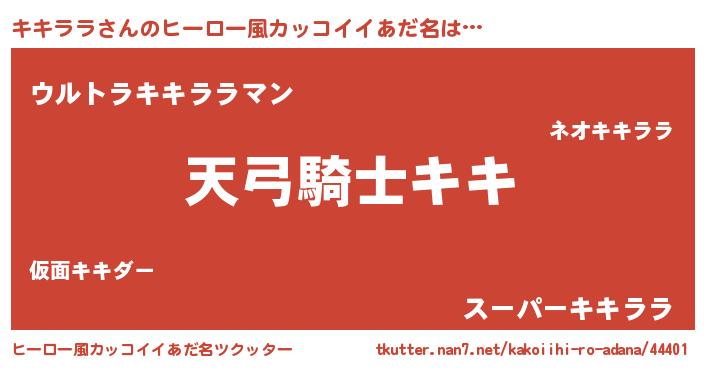 | 男性向けラノベタイトル風あだ名 | 『キキララ~年齢イコール彼女いない歴の魔法使い~』 |