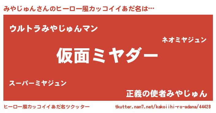 | 意味不明あだ名 | 『住所不定無職みやじゅん(5歳)』 |