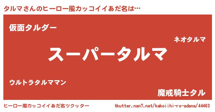 タルマさんのヒーロー風カッコイイあだ名をツクッター!