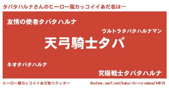 | 男性向けラノベタイトル風あだ名 | 『タバタハルナの嫁は女の子じゃないと思った?』 |
