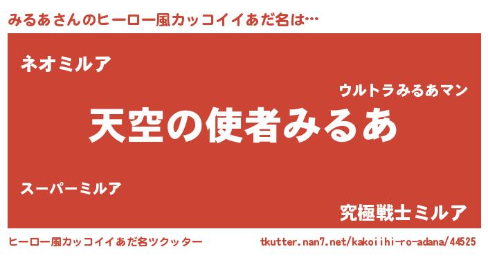 | 女子向けラノベタイトル風あだ名 | 『死神みるあの再婚』『闇のみるあ』 |