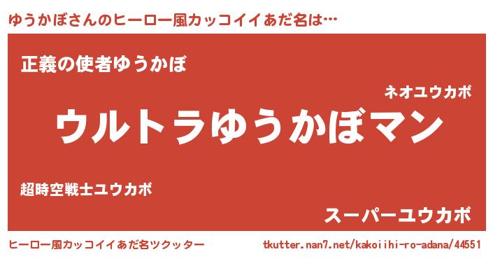 | ポケモン風あだ名 | 『ユウカダネ』『ユックウザ』 |