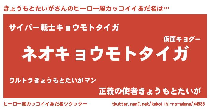 | 男性向けラノベタイトル風あだ名 | 『きょうもとたいがという概念が存在しない退屈な世界 』 |
