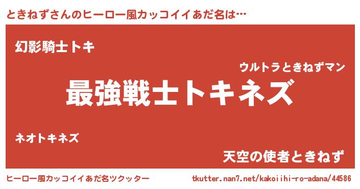 | 男性向けラノベタイトル風あだ名 | 『Re:ときねずから始める異世界生活』 |