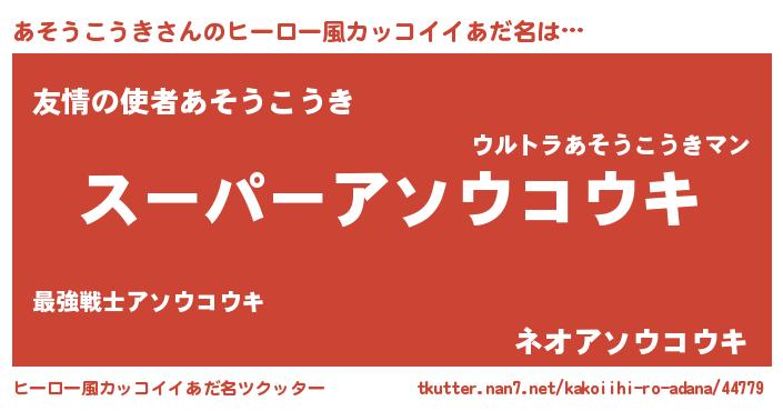 | 男性向けラノベタイトル風あだ名 | 『あそうこうきの憂鬱』 |