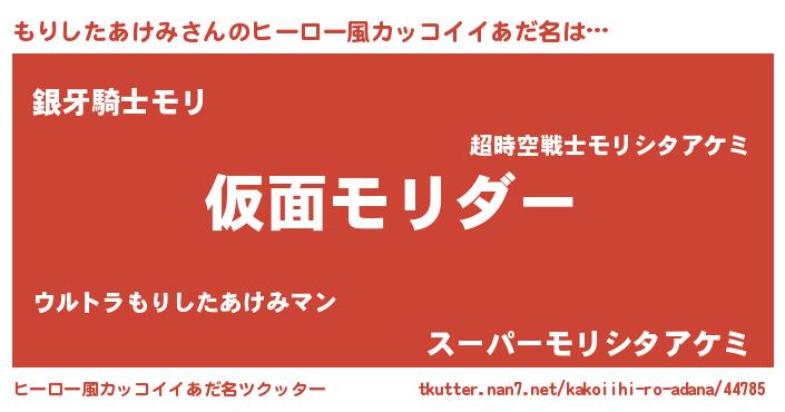 | 意味不明あだ名 | 『住所不定無職もりしたあけみ(59歳)』 |