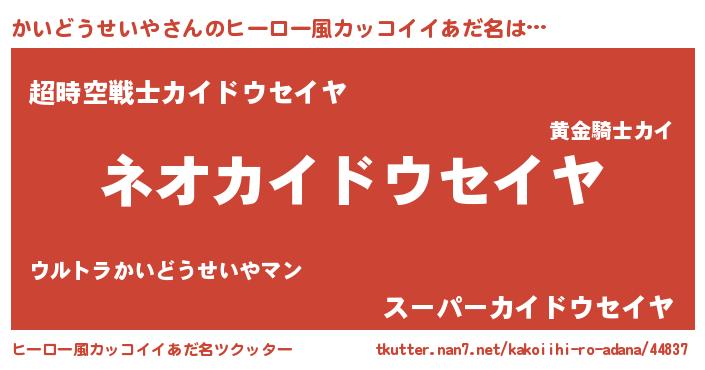 | 男性向けラノベタイトル風あだ名 | 『転生したらかいどうせいやだった件』 |