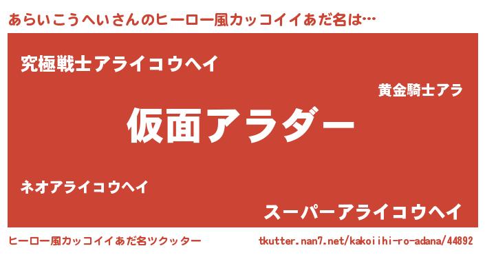 | 意味不明あだ名 | 『住所不定無職あらいこうへい(81歳)』 |