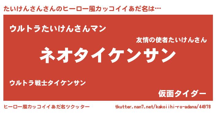 | 意味不明あだ名 | 『永久保存たいけんさん』 |