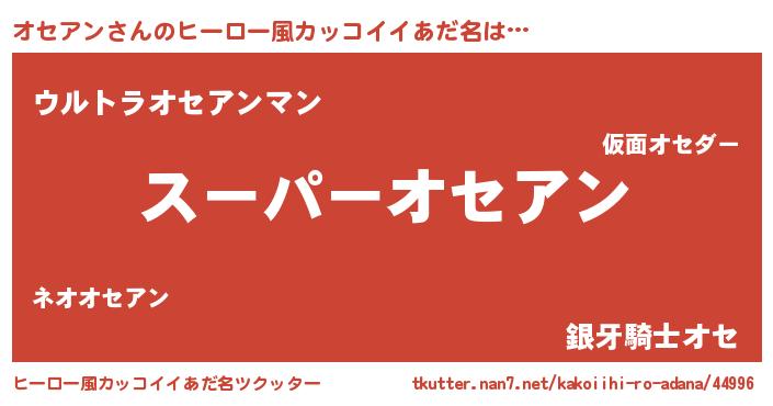 | 男性向けラノベタイトル風あだ名 | 『転生したらオセアンだった件』 |