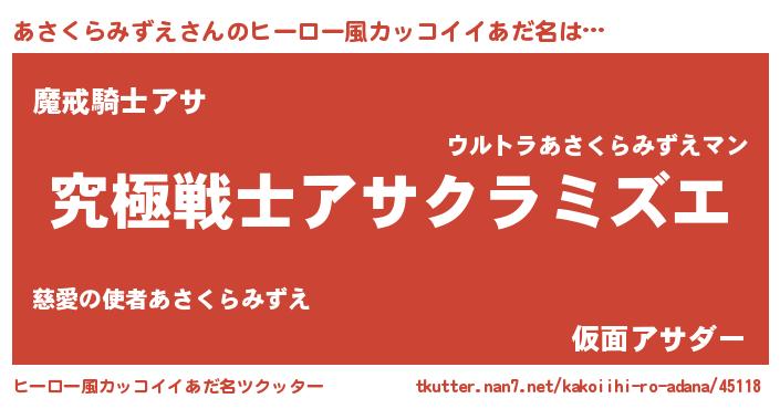 | 女子向けラノベタイトル風あだ名 | 『あさくらみずえストレイドッグス』 |