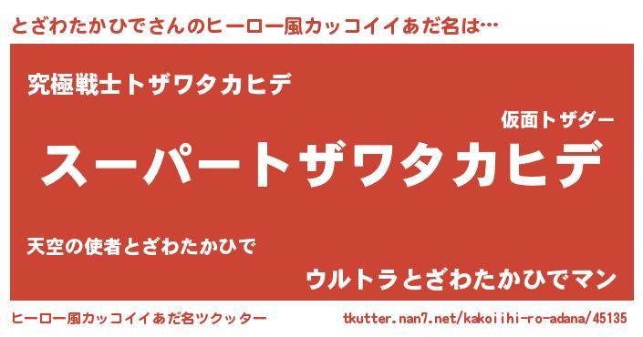 | 男性向けラノベタイトル風あだ名 | 『とざわたかひでの憂鬱』 |