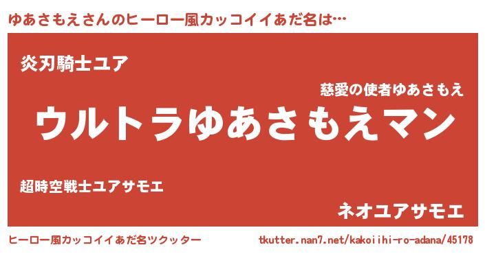 | 男性向けラノベタイトル風あだ名 | 『転生したらゆあさもえだった件』 |
