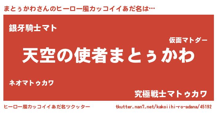 | 男性向けラノベタイトル風あだ名 | 『ノーゲーム・ノーマトゥカワ』 |